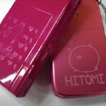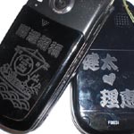 | 貴方の携帯電話の裏面、ふた部分にお名前を彫刻しております。 |